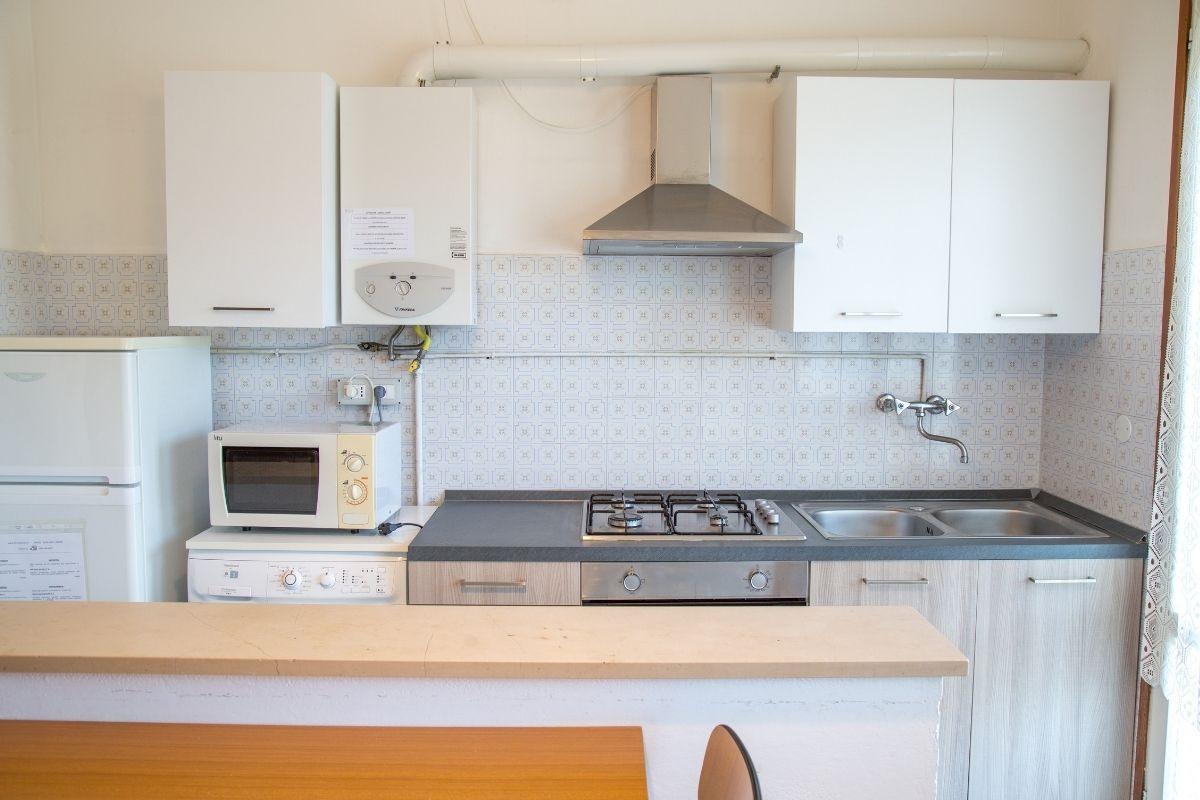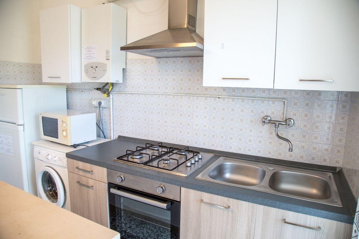Auch wenn die Wohnung etwas in die Jahre gekommen ist, wurde sie mit einer neuen und funktionalen Kochnische ausgestattet. Die Wohnung bietet großzügige Raumaufteilung, die jedem seinen eigenen Platz garantiert, sowie viel Tageslicht, das durch die Fenstertüren in der Küche und im Schlafzimmer hereinkommt. Die große Terrasse, die um die Wohnung herum verläuft, ist morgens der Sonne ausgesetzt und eignet sich perfekt, um einen Drink im Freien zu genießen, sich zu entspannen und Strandsachen aufzubewahren.