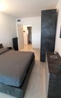 Tornando nell'antibagno vi troverete di fronte la porta della luminosa camera da letto. Il letto matrimoniale è abbinato ad un ampio armadio a due alte scorrevoli, una cassettiera e 2 comodini. Molto spazio per riporre abiti ed effetti personali
